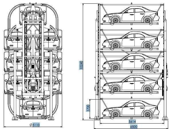 Vertical rotating car parks are a highly innovative and technologically advanced solution to maximise the space allocated to vehicle parking.